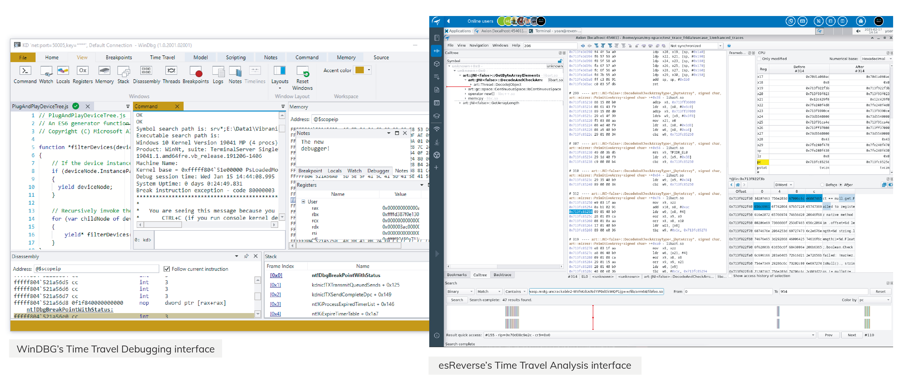Unlike traditional debuggers, esReverse features a custom GUI designed specifically for this exact workflow. That’s why we refer to it as Time Travel Analysis—because it goes far beyond simple debugging.