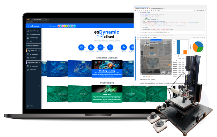 From a single interface, you can perform Side Channel Attacks (SCA), Fault Injection (LFI, EMFI, Voltage/Clock Glitching), and Failure Analysis, including Photoemission.